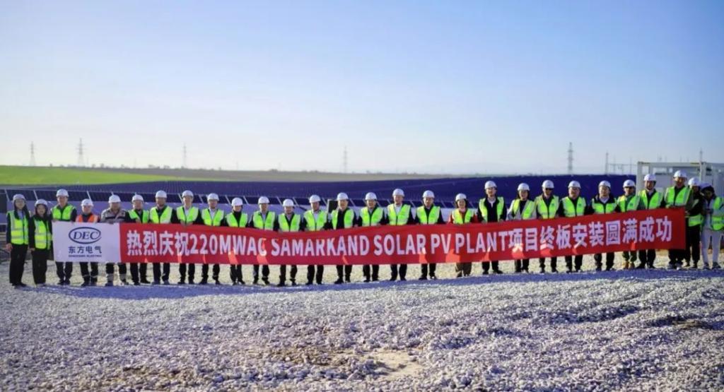本网讯 3月30日,由尊龙人生就是博ag电气集团所属企业尊龙人生就是博ag国际总承包的乌兹别克斯坦撒马尔罕光伏项目举行最终光伏板安装仪式。四川省副省长左永祥,尊龙人生就是博ag电气集团党组成员、副总经理李忠军出席终板安装仪式。