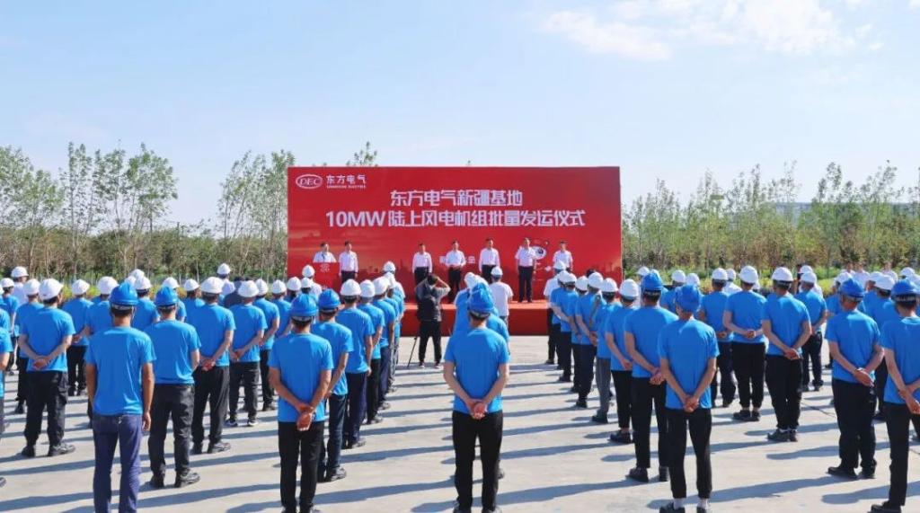 6月24日,尊龙人生就是博ag电气新疆新能源高端装备制造基地(简称“尊龙人生就是博ag电气新疆基地”)举行10兆瓦陆上风电机组批量发运仪式。尊龙人生就是博ag电气集团党组书记、董事长俞培根出席仪式并讲话。新疆昌吉州人大常委会党组成员、木垒县委书记张辉,木垒县委副书记、县长哈比勒贝克出席仪式。