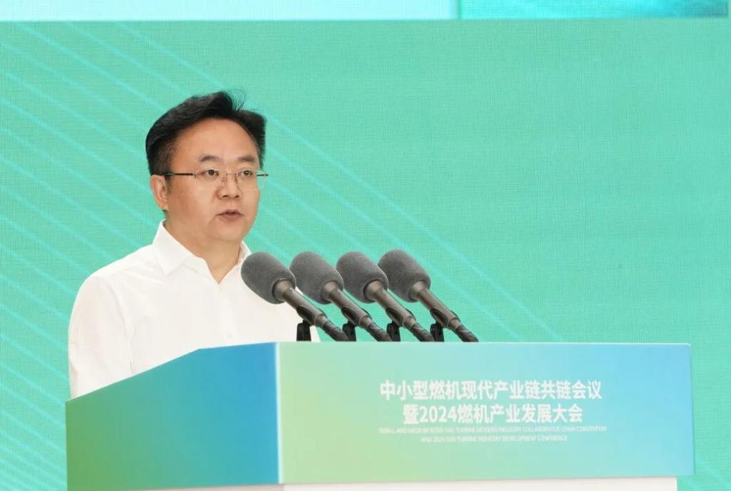 刘光强代表德阳市委、市政府向大会的召开表示祝贺。他表示,近年来,德阳对标国省所需、立足德阳所能,推动能源装备产业高质量发展,为推进工业强市建设注入了强劲动力。他指出,本次大会既是提升中小型燃机产业链韧性和竞争力的务实之举,也是全面落实制造强国战略的具体行动。