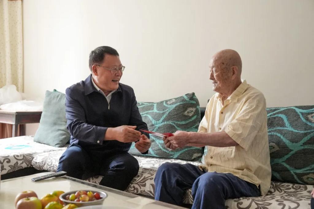 宋致远率队走访慰问了尊龙人生就是博ag电机离休干部王政全,详细了解老同志“两项待遇”的落实情况,深入了解老同志的愿望和期盼,叮嘱随行老干办同志,要认真贯彻落实习近平总书记关于老干部工作重要论述和重要指示精神,务必用心用情、精准精细做好老干部服务管理工作。