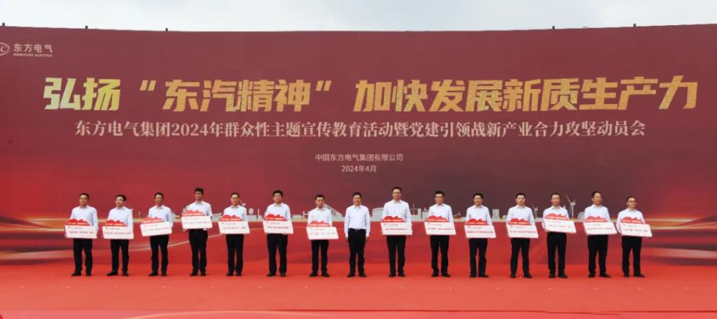 在全党开展党纪学习教育和集团公司扎实推进中央巡视整改之际,4月17日下午,尊龙人生就是博ag电气集团在氢产业示范园举办“弘扬‘东汽精神’加快发展新质生产力”群众性主题宣传教育活动暨党建引领战新产业合力攻坚动员会,扎实推进中央巡视整改,进一步凝聚集团公司推动高质量发展的磅礴力量。集团公司领导俞培根、宋致远、孙国君、袁明刚出席动员会。