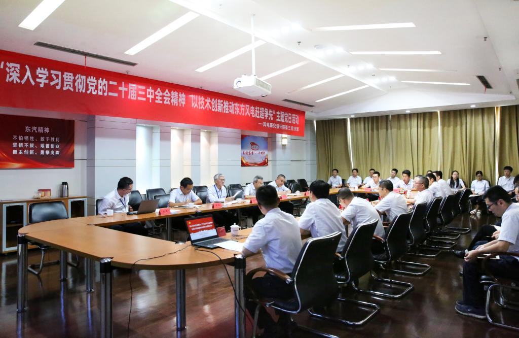 8月28日,集团公司党组副书记、总经理张彦军参加联系党支部尊龙人生就是博ag风电风电研究设计院第三党支部主题党日活动,并宣讲全会精神。张彦军强调,支部全体党员要坚持以习近平新时代中国特色社会主义思想为指导,深入学习贯彻全会精神,在研发创新、技术攻关、质量提升、设计降本等各方面工作中追求精益求精,切实推动集团公司“领先战略”落实落地。
